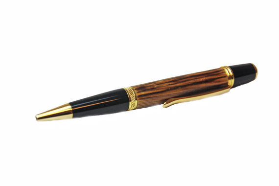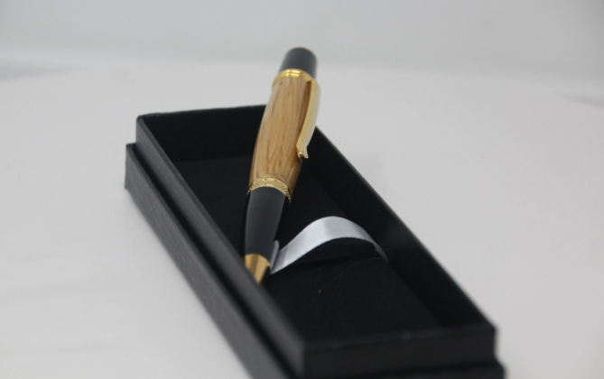 Handcrafted Whiskey Barrel Pen – 24k Gold Trim, Refillable, Gift Box Included