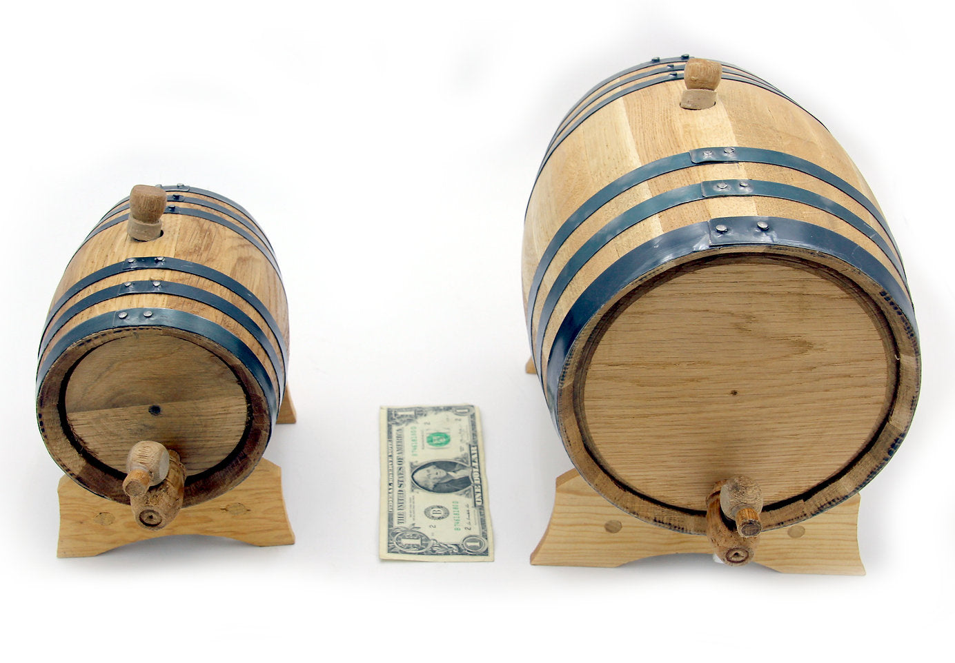 1 Liter Barrel: Approx. 6" long × 5" wide (excluding stand)