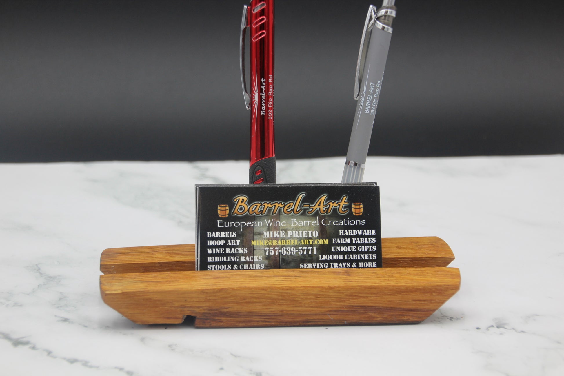 Wine Barrel Business Card & Pen Holder | Reclaimed Stave Desk Organizer | Rustic Office Gift