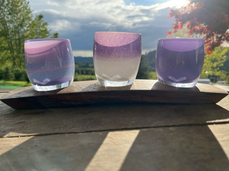 Designed to beautifully display three Glassybaby candle holders, this tray adds a warm, rustic accent to any room — from spa baths and entry tables to wedding receptions and boutique settings.