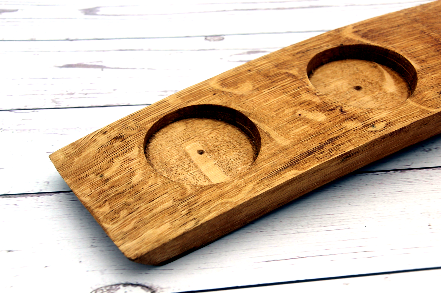 Glassybaby Candle Holder – 3 Slot Wine Barrel Stave Display