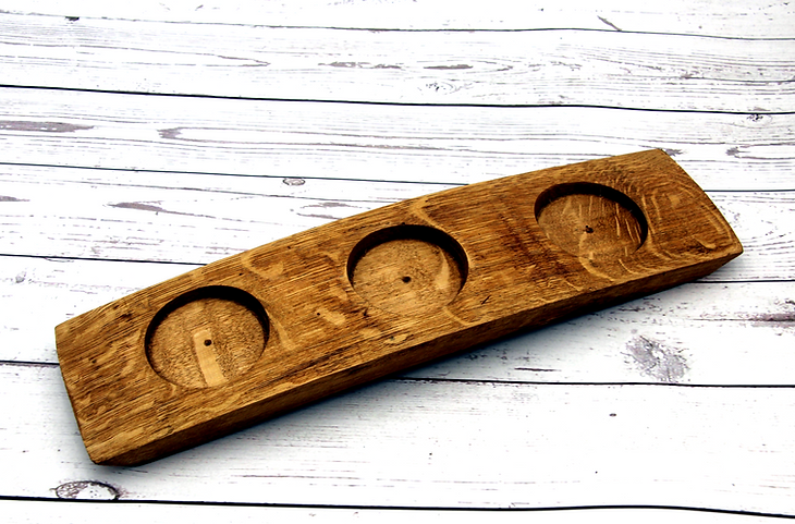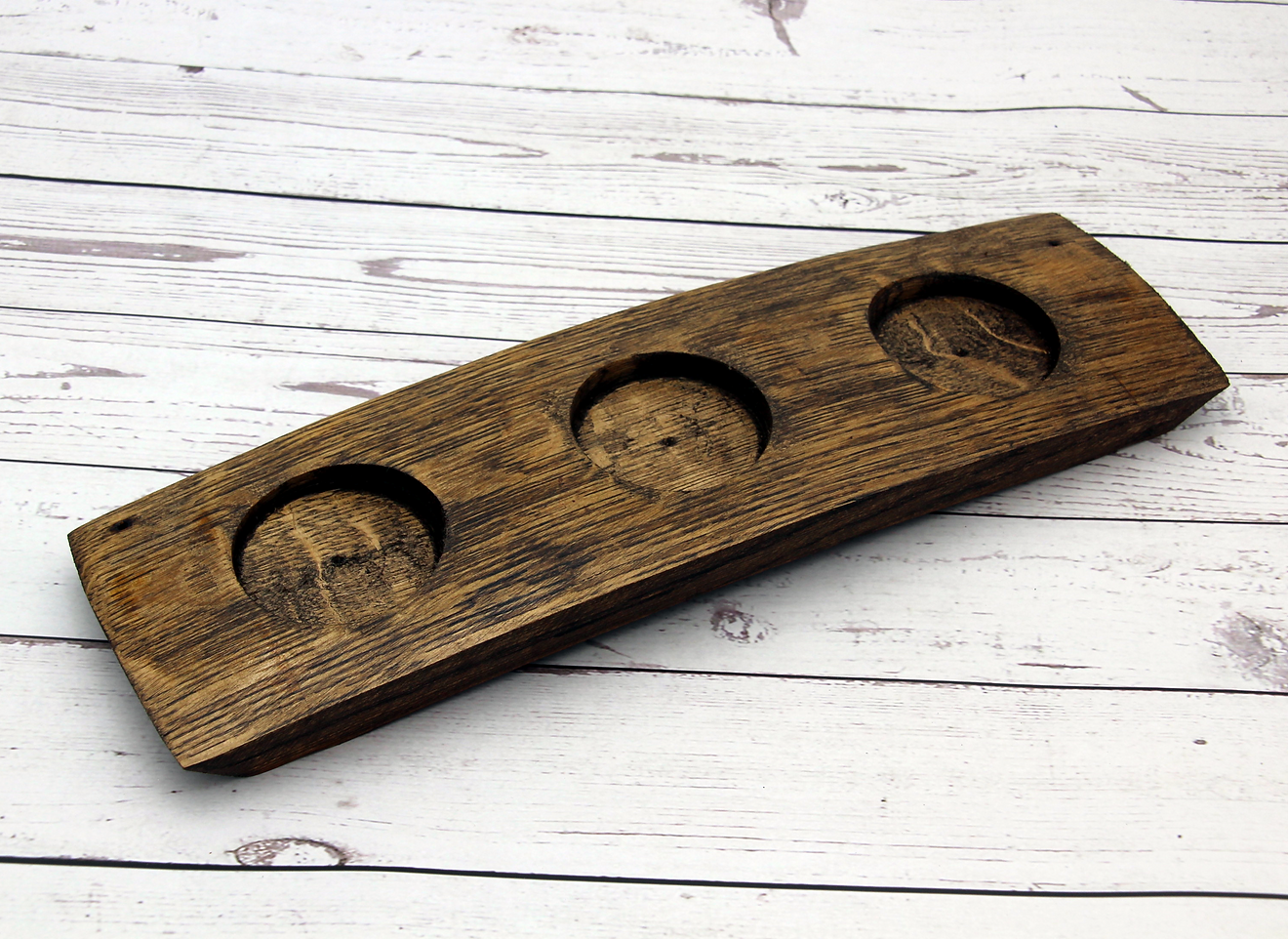 This unique flight server is made from a genuine red wine barrel stave, complete with natural wine staining, oak grain, and gentle curvature. A clear coat finish adds lasting protection and shine.